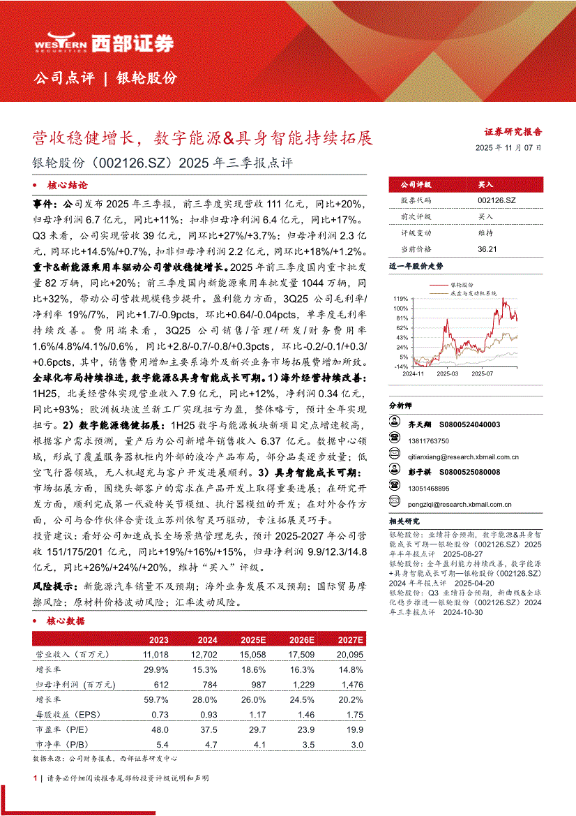 银轮股份:西部证券-银轮股份-002126-2025年三季报点评:营收稳健增长,数字能源&具身智能持续拓展-251107
