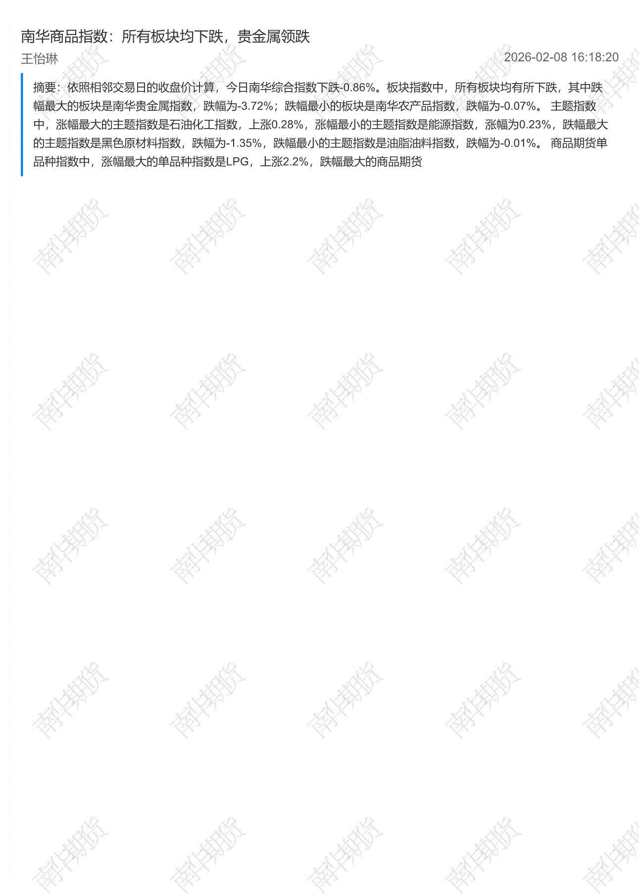 南华期货-商品指数:所有板块均下跌,贵金属领跌-260208
