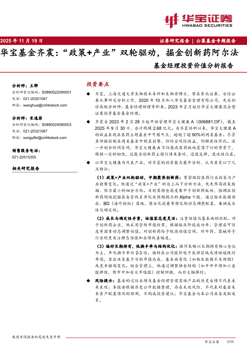 华宝证券-基金经理投资价值分析报告:华宝基金齐震,“政策+产业”双轮驱动,掘金创新药阿尔法-251119