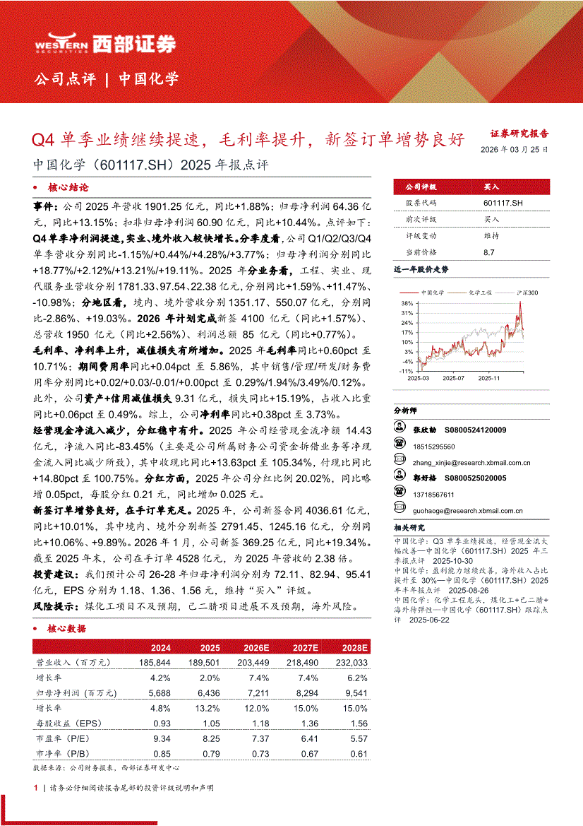 中国化学:西部证券-中国化学-601117-2025年报点评:Q4单季业绩继续提速,毛利率提升,新签订单增势良好-260325