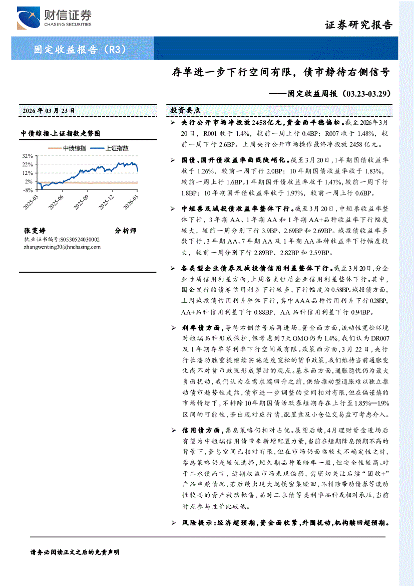 财信证券-固定收益周报:存单进一步下行空间有限,债市静待右侧信号-260323