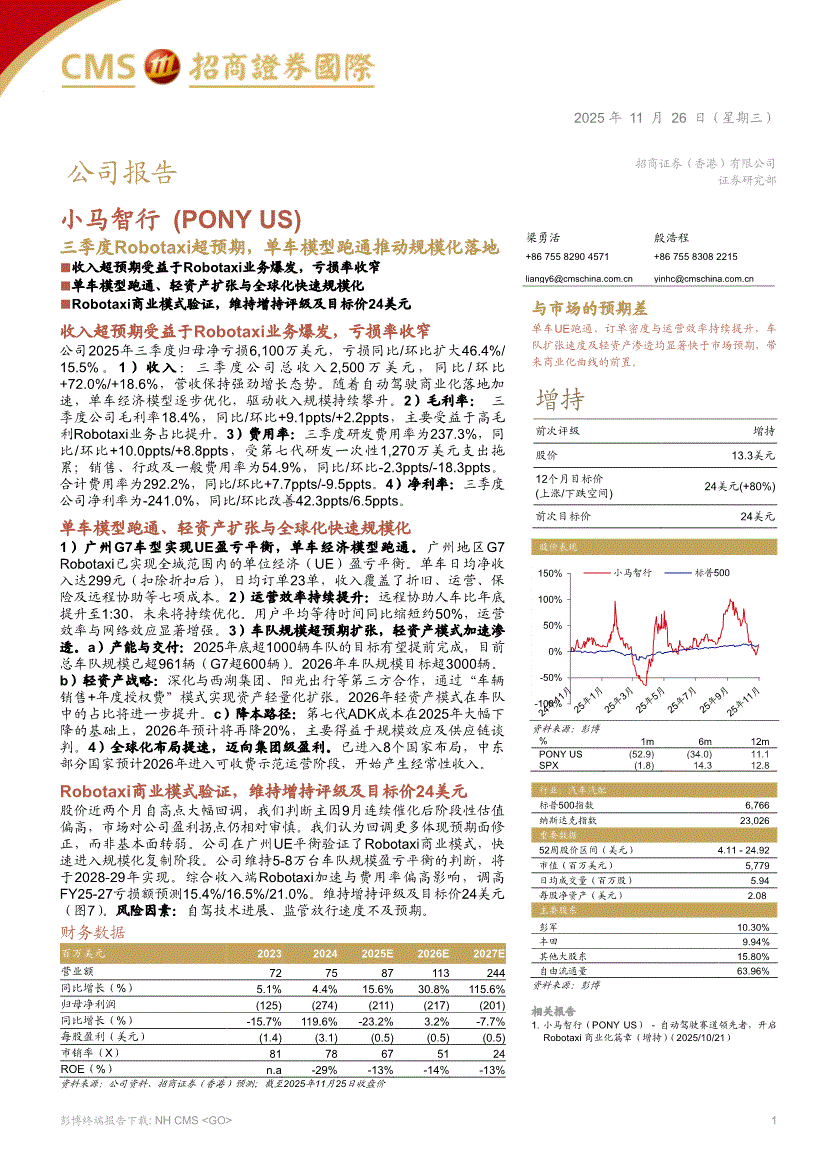 小马智行:招商证券(香港)-小马智行-PONY.US-三季度Robotaxi超预期,单车模型跑通推动规模化落地-251126