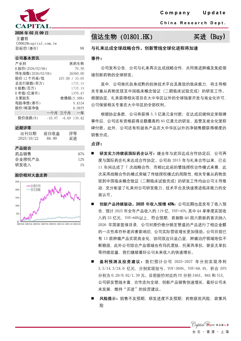 信达生物:群益证券-信达生物-1801.HK-与礼来达成全球战略合作,创新管线全球化进程将加速-260209