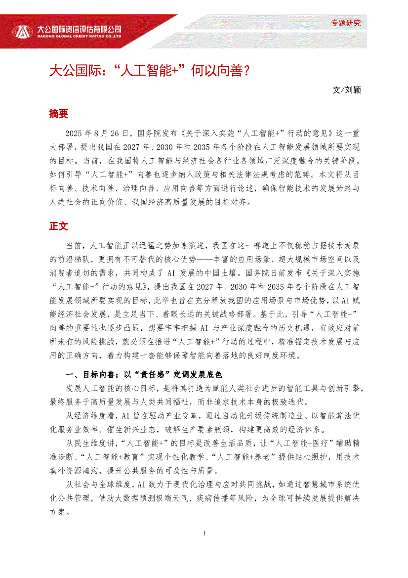 人工智能行业:大公国际-人工智能行业:“人工智能+”何以向善?-251015