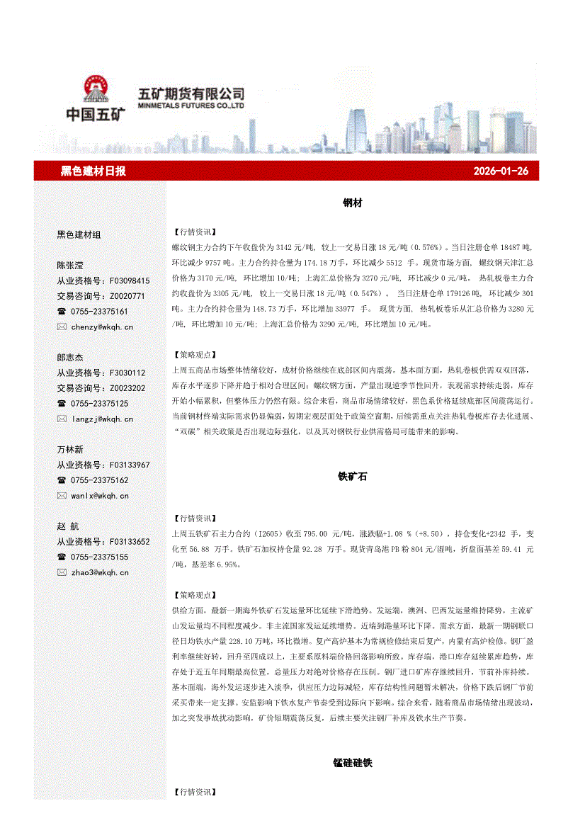 五矿期货-双焦周报:预计盘面继续呈现偏强震荡,注意短期市场情绪扰动-260124