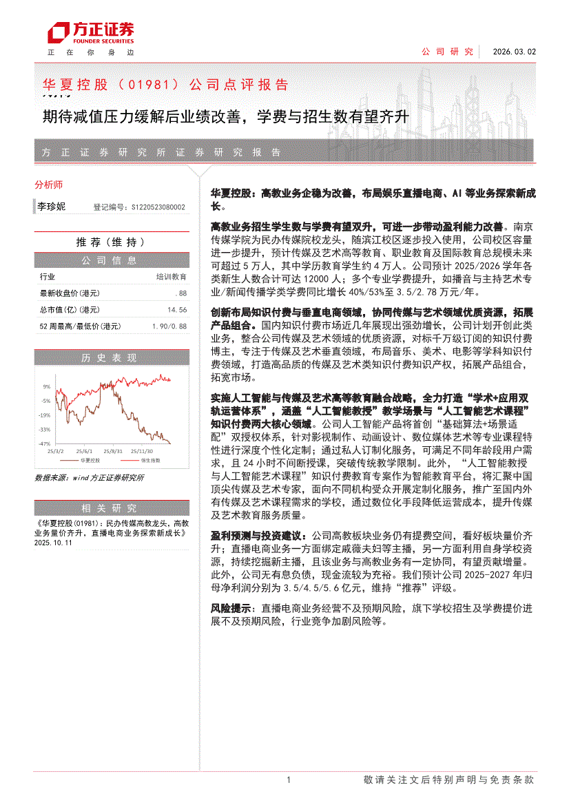 华夏控股:方正证券-华夏控股-1981.HK-公司点评报告:期待减值压力缓解后业绩改善,学费与招生数有望齐升-260302