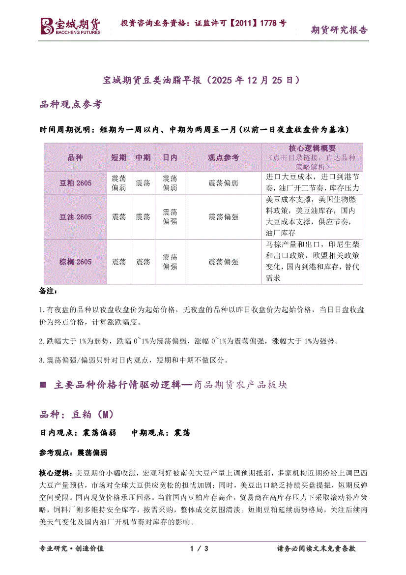 宝城期货-豆类日报:供应预期增加,豆类油脂震荡偏弱-251219