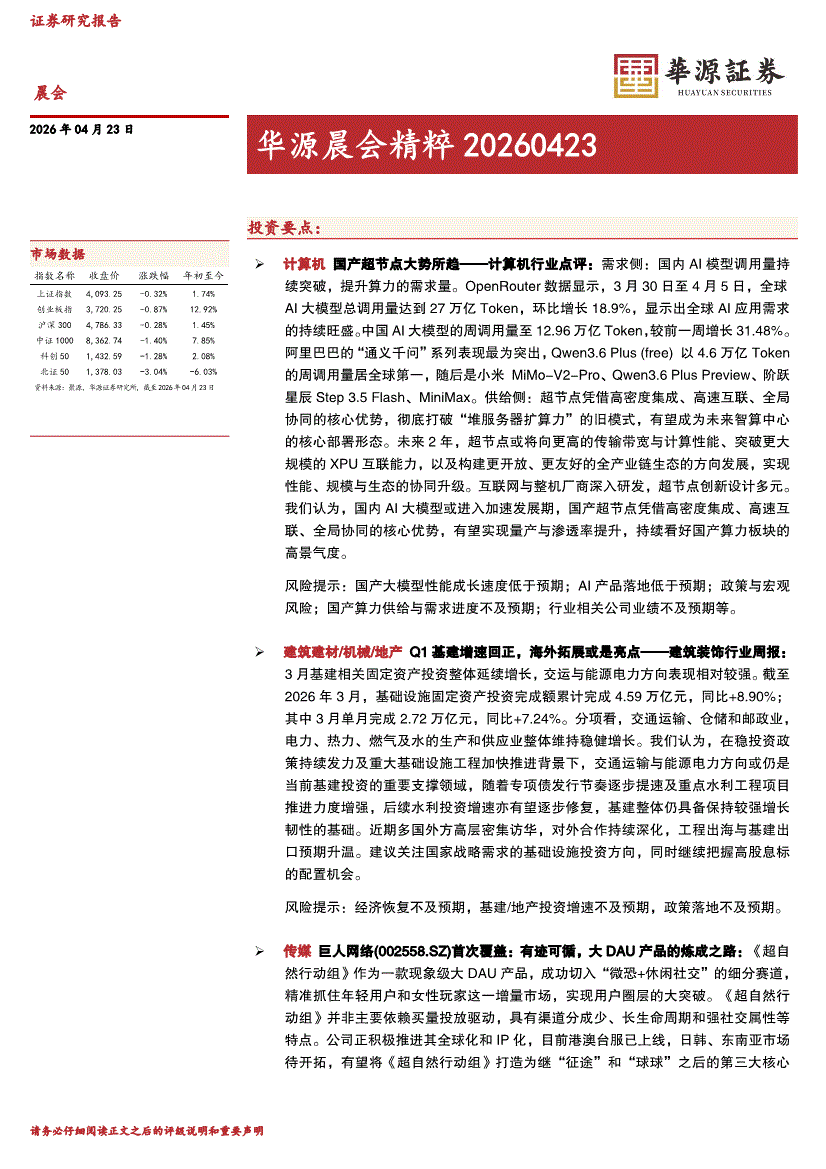华源证券-晨会精粹-260423