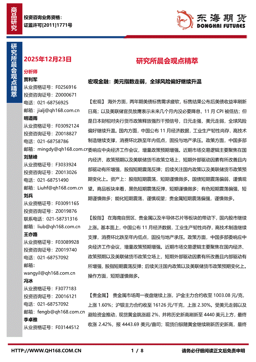 东海期货-研究所晨会观点精萃-251223