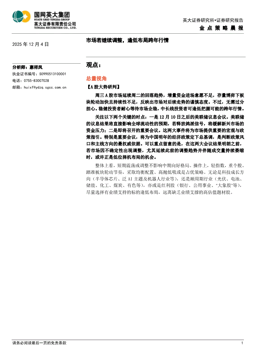 英大证券-每周投资早参:短期调整不改中期向好格局-251124