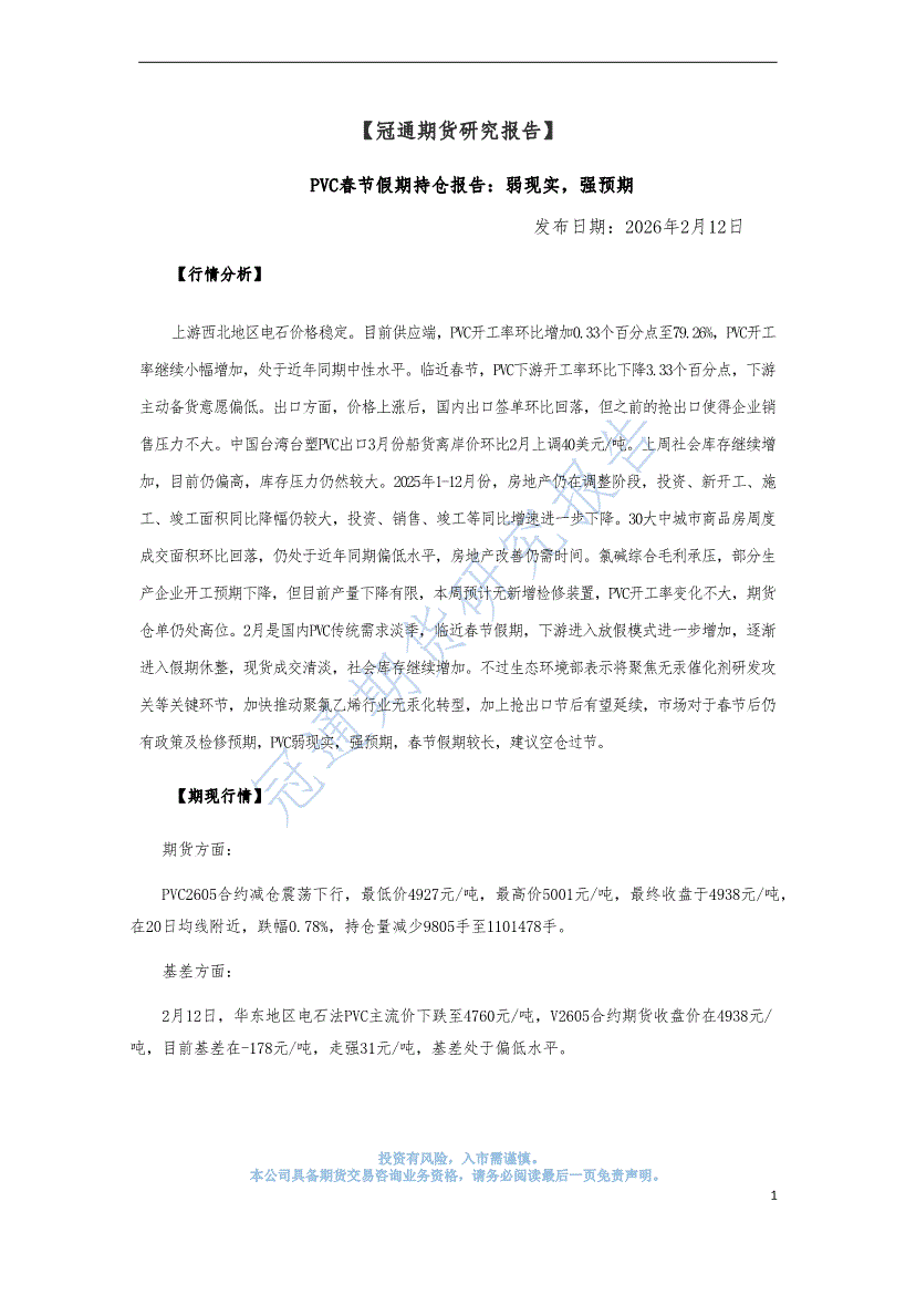 冠通期货-PVC春节假期持仓报告:弱现实,强预期-260212