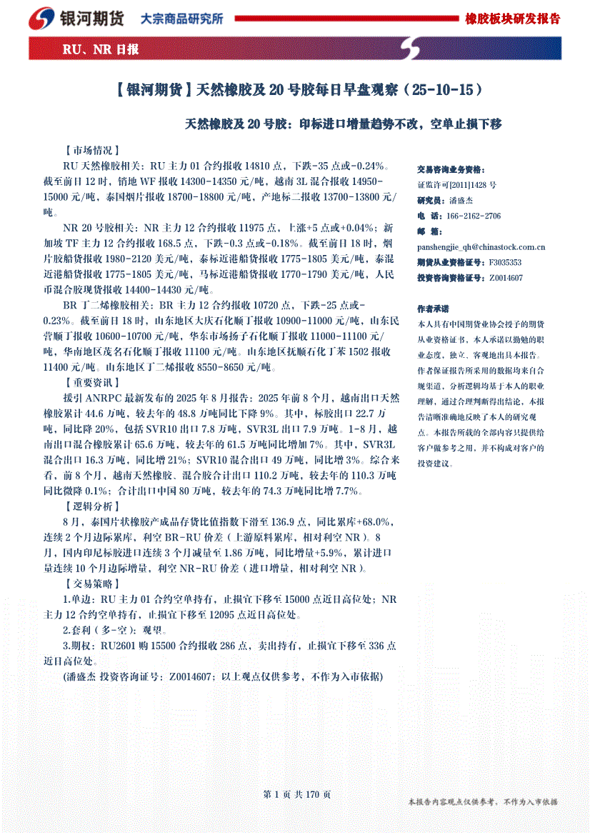银河期货-天然橡胶及20号胶每日早盘观察-251015