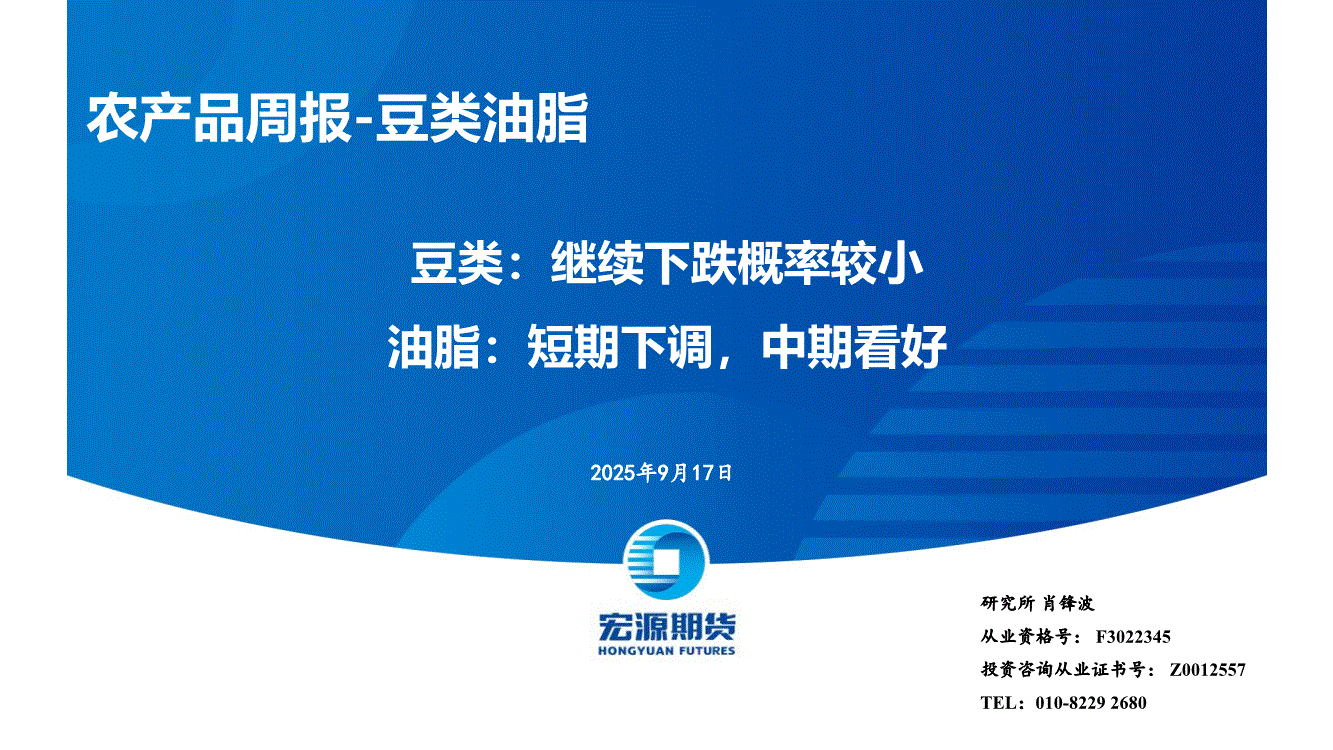 宏源期货-农产品周报~豆类油脂:豆类,继续下跌概率较小,油脂,短期下调,中期看好-250917