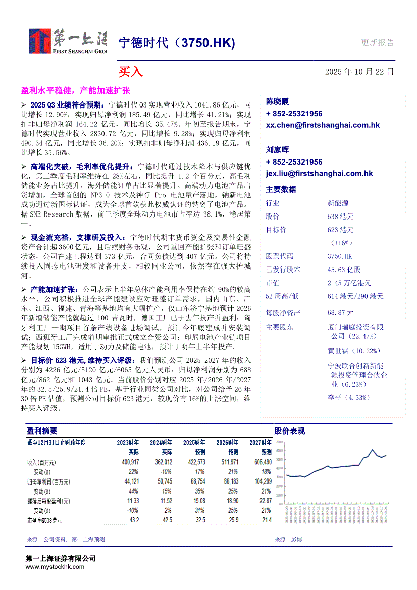 宁德时代:第一上海-宁德时代-3750.HK-盈利水平稳健,产能加速扩张-251022