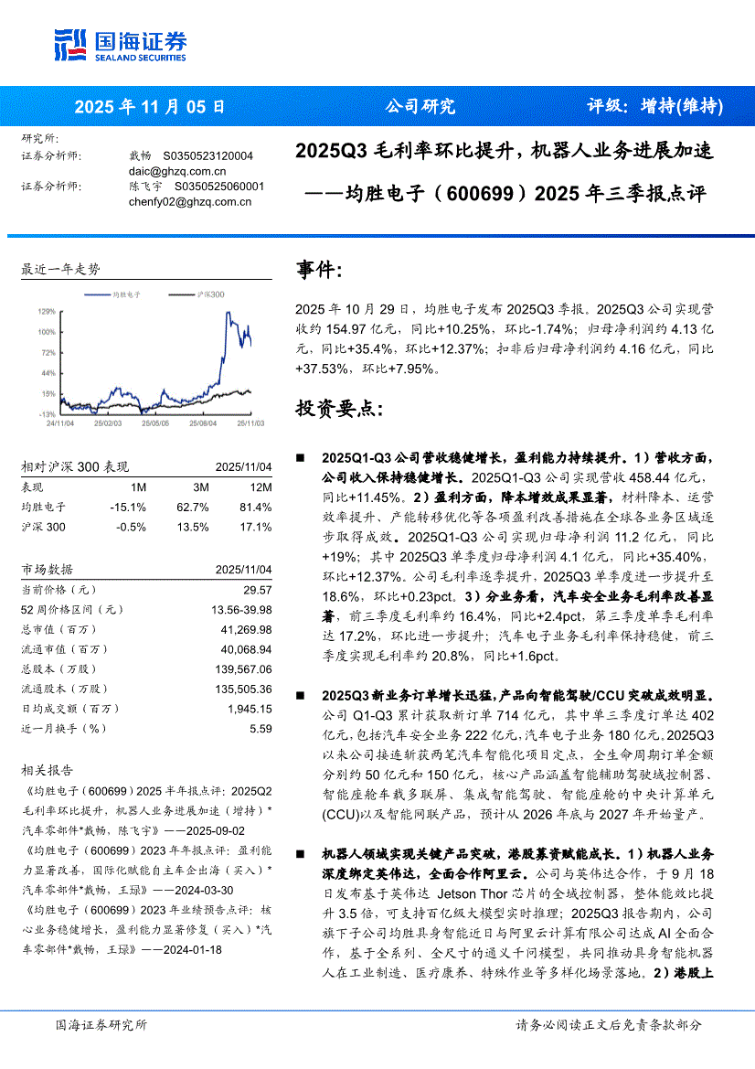 均胜电子:国海证券-均胜电子-600699-2025年三季报点评:2025Q3毛利率环比提升,机器人业务进展加速-251105