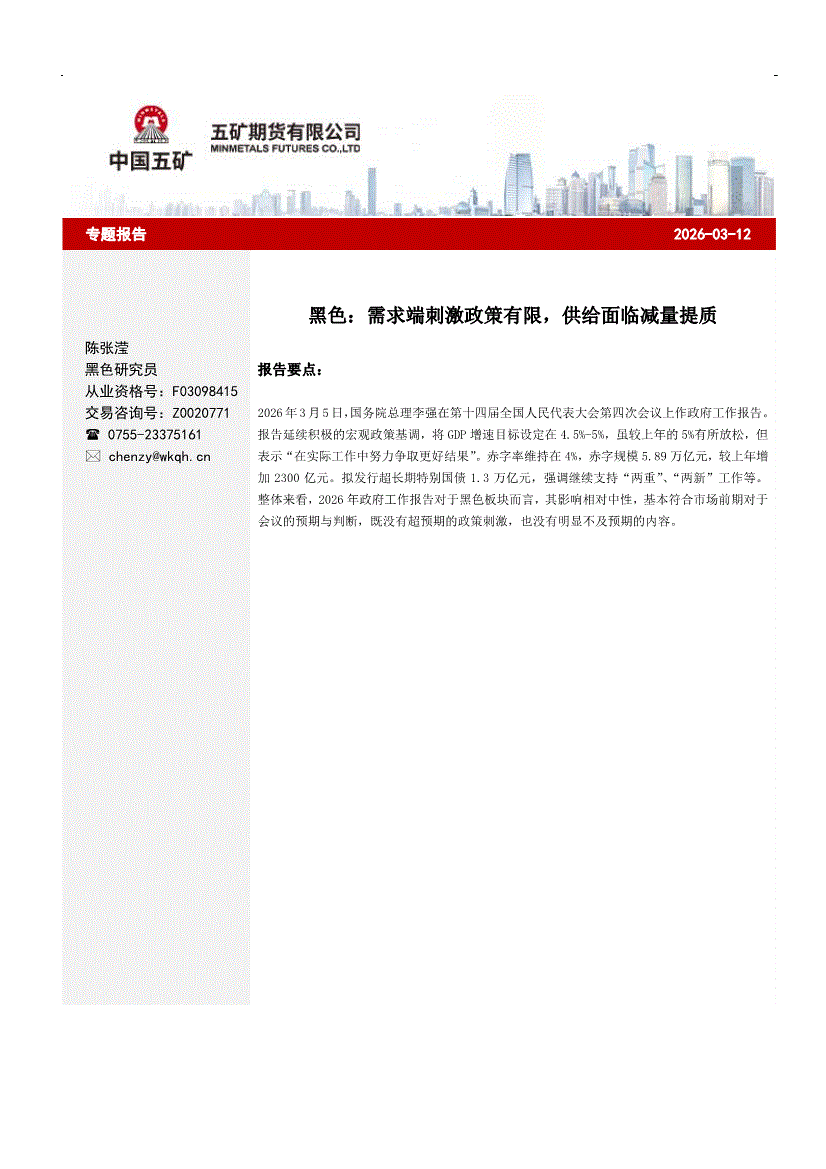 五矿期货-黑色:需求端刺激政策有限,供给面临减量提质-260312