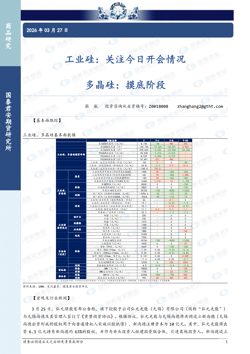 国泰君安期货-工业硅:关注今日开会情况,多晶硅,摸底阶段-260327