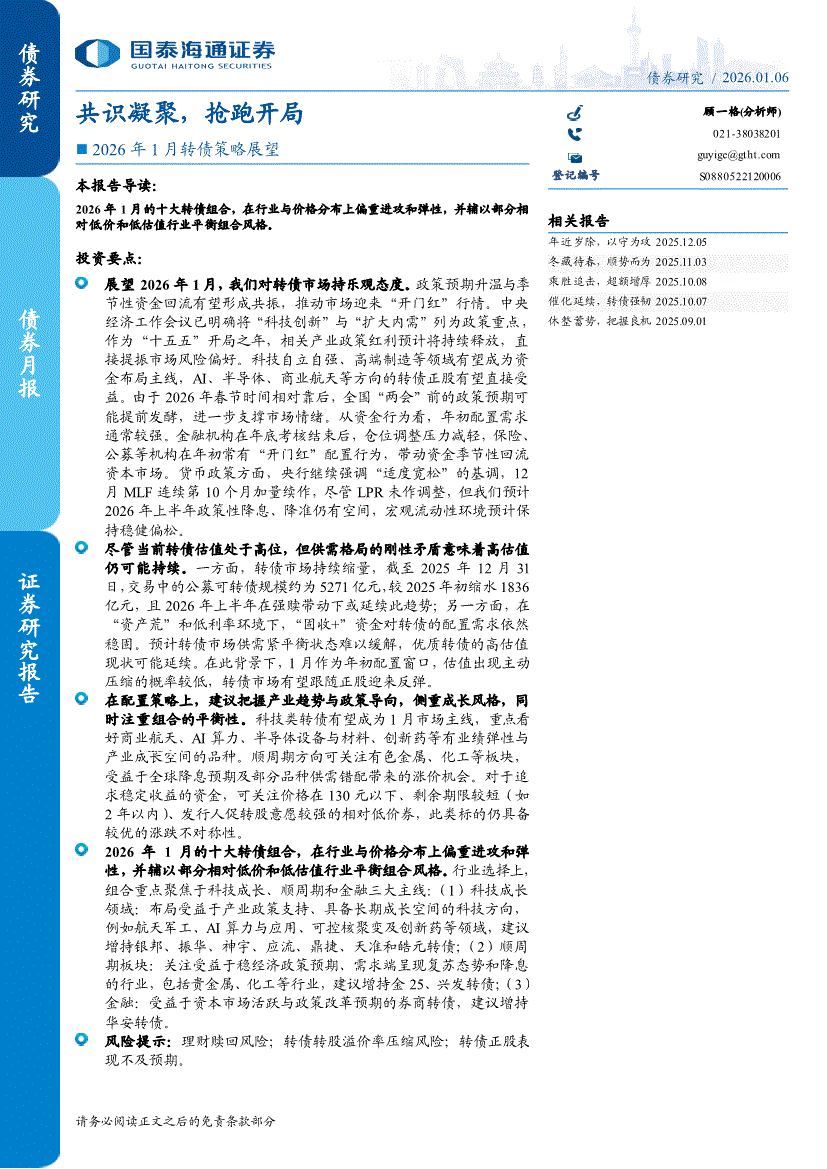 国泰海通证券-2026年1月转债策略展望:共识凝聚,抢跑开局-260106