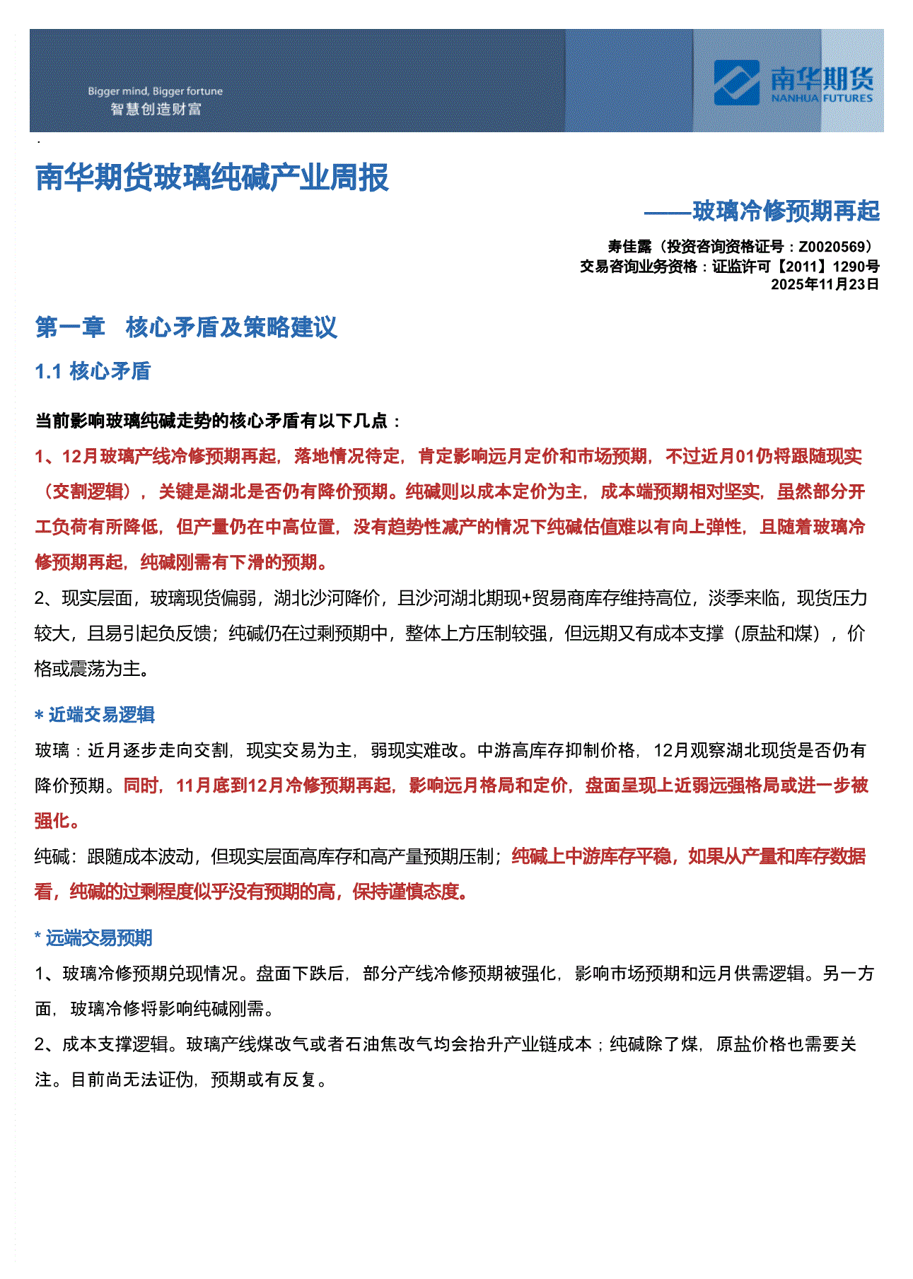 南华期货-玻璃纯碱产业周报:玻璃冷修预期再起-251124