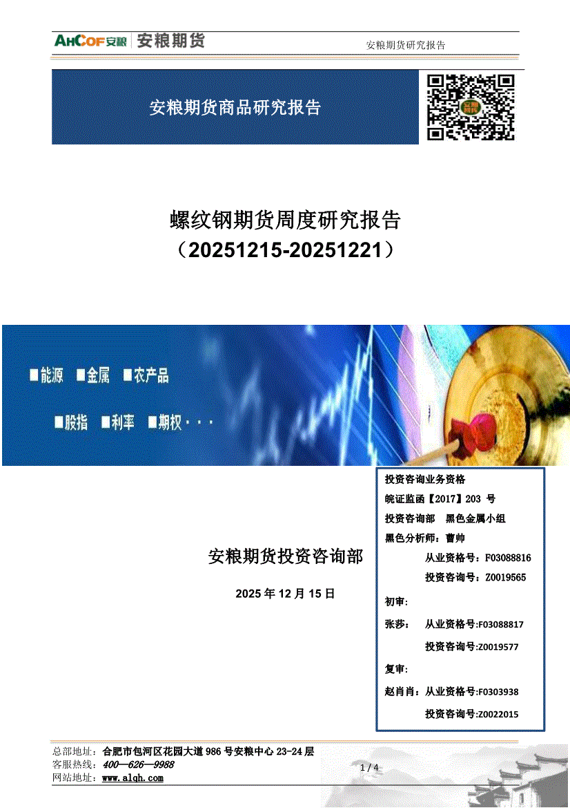 安粮期货-螺纹钢期货周度研究报告:宏观情绪好转,钢材低位运行-251222