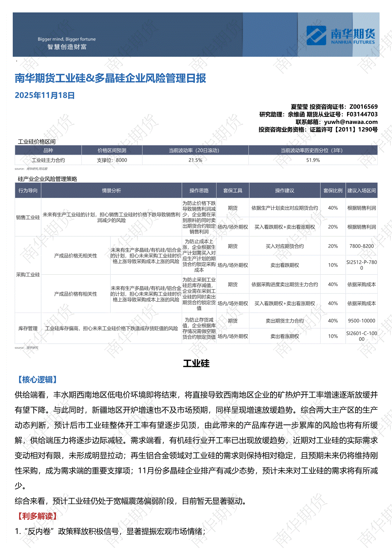 南华期货-工业硅&多晶硅企业风险管理日报-251118
