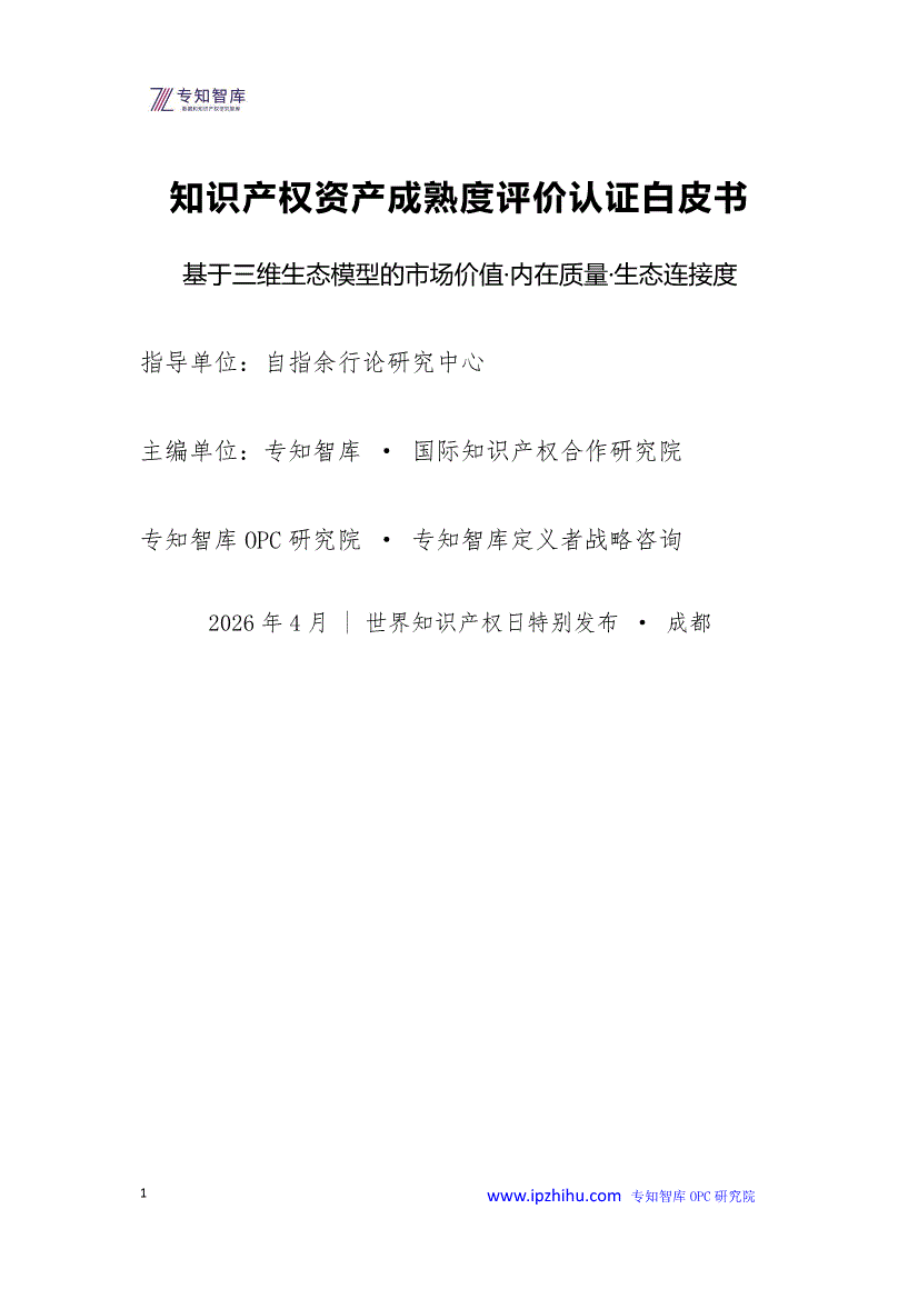 专知智库-知识产权资产成熟度评价认证白皮书:基于三维生态模型的市场价值·内在质量·生态连接度-260427