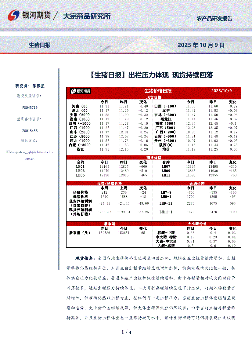 银河期货-【生猪日报】供应压力继续增加,现货回落明显-251010