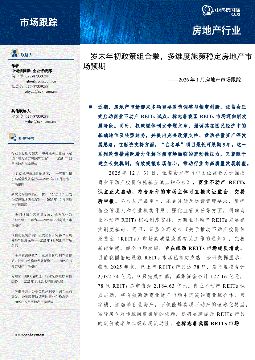 房地产行业:中诚信国际-2026年1月房地产行业市场跟踪:岁末年初政策组合拳,多维度施策稳定房地产市场预期-260128