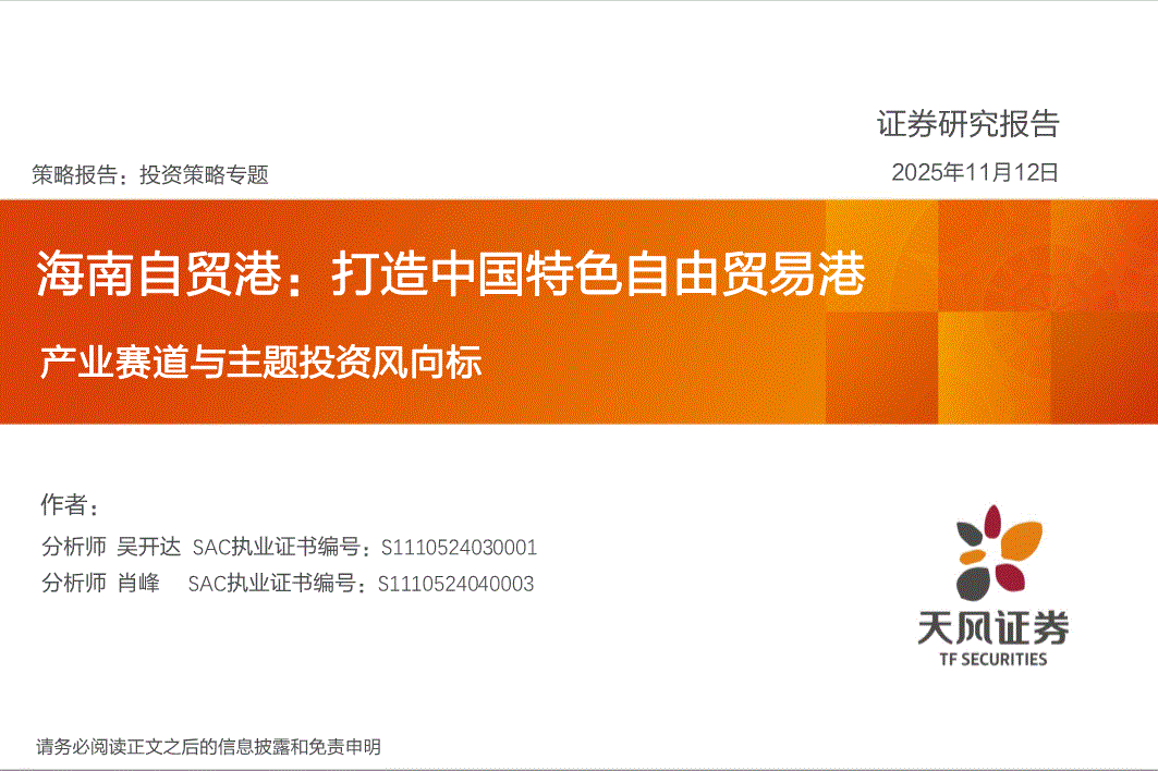 天风证券-产业赛道与主题投资风向标:海南自贸港,打造中国特色自由贸易港-251112