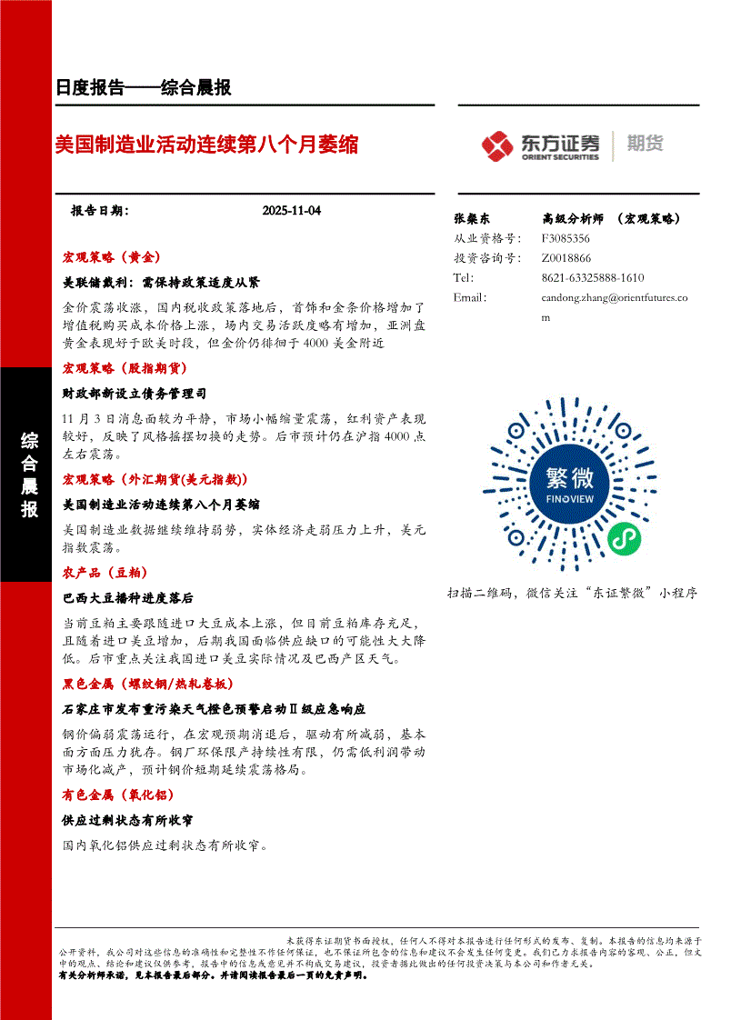 东证期货-综合晨报:美国制造业活动连续第八个月萎缩-251104