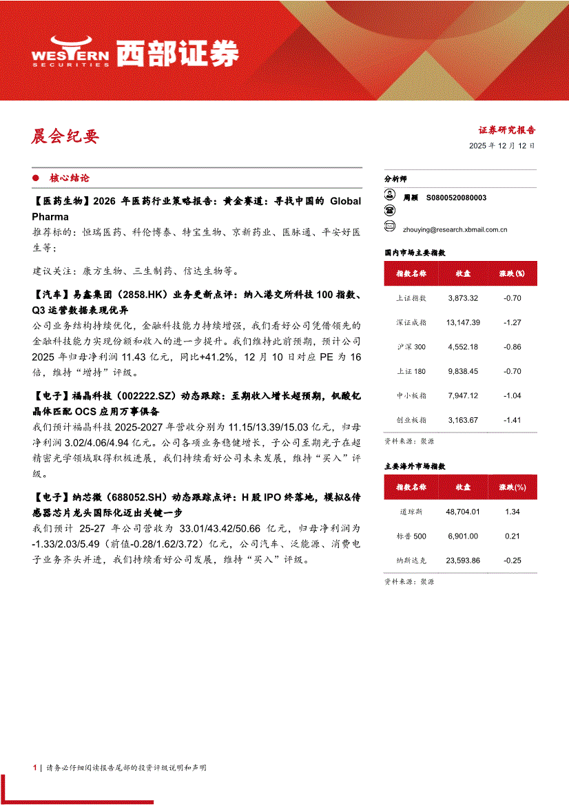 西部证券-晨会纪要-251212