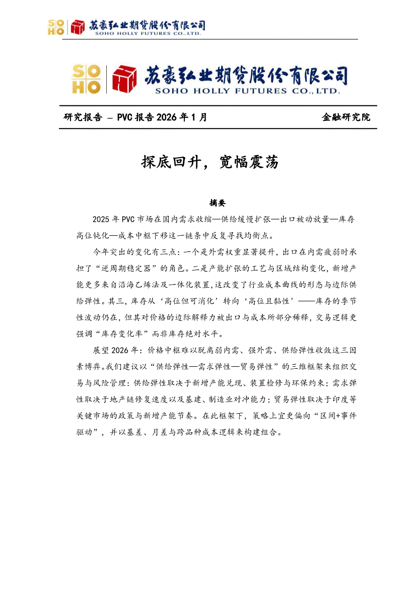 弘业期货-PVC报告2026年1月:探底回升,宽幅震荡-260112