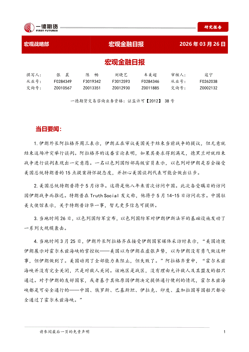 一德期货-宏观金融日报-260326
