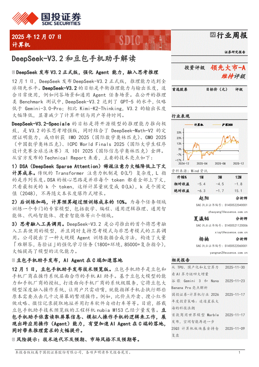 计算机行业:国投证券-计算机行业周报:DeepSeek~V3.2和豆包手机助手解读-251207