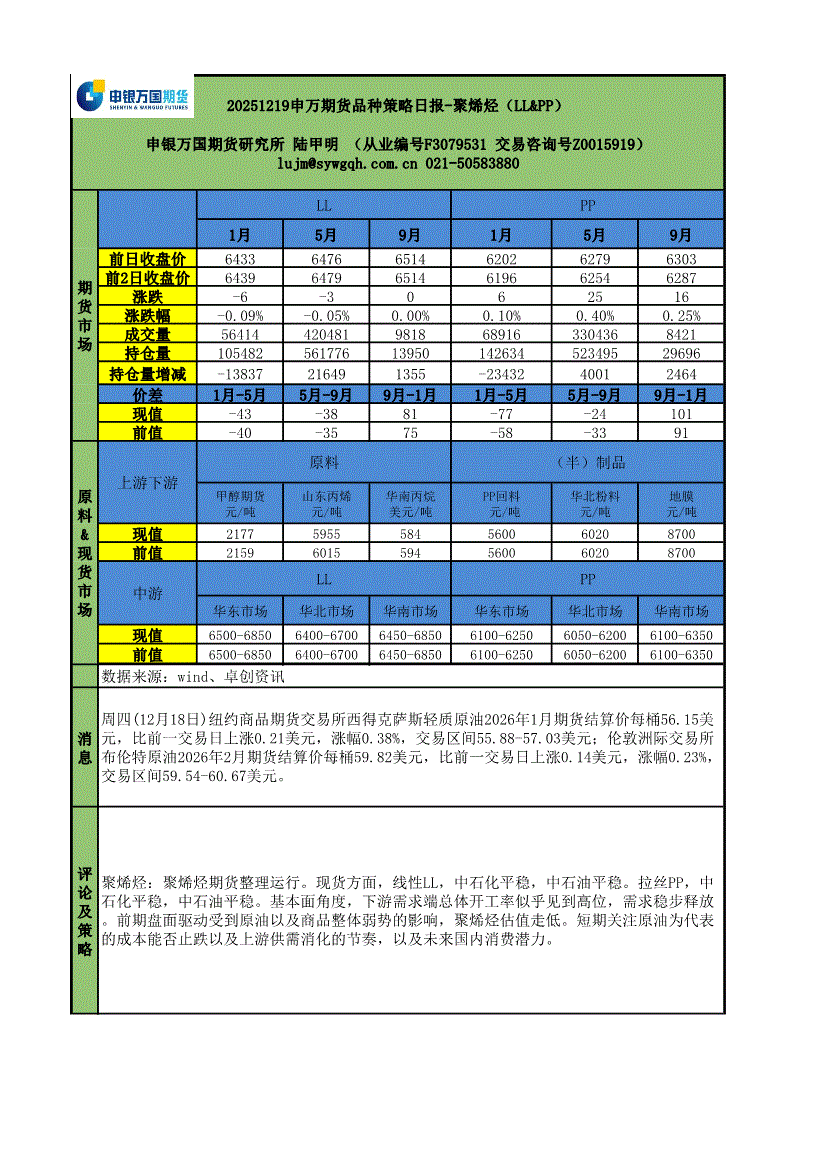 申银万国期货-品种策略日报:聚烯烃(LL&PP)-251219