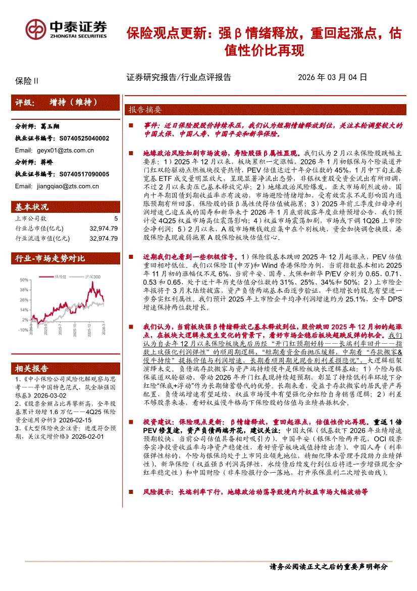 保险行业:中泰证券-保险行业观点更新:强β情绪释放,重回起涨点,估值性价比再现-260304