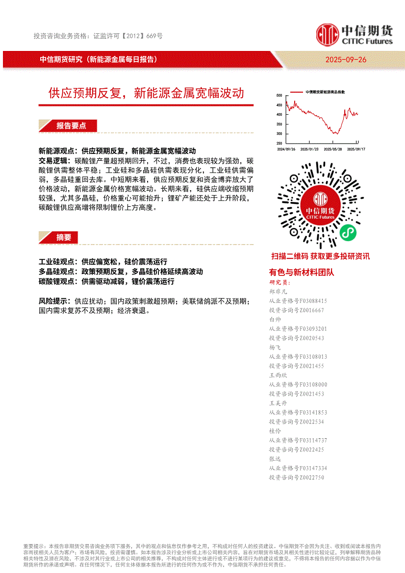 中信期货-新能源金属每日报告:供应预期反复,新能源金属宽幅波动-250926