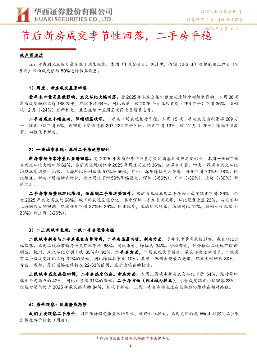 华西证券-节后新房成交季节性回落,二手房平稳-260110