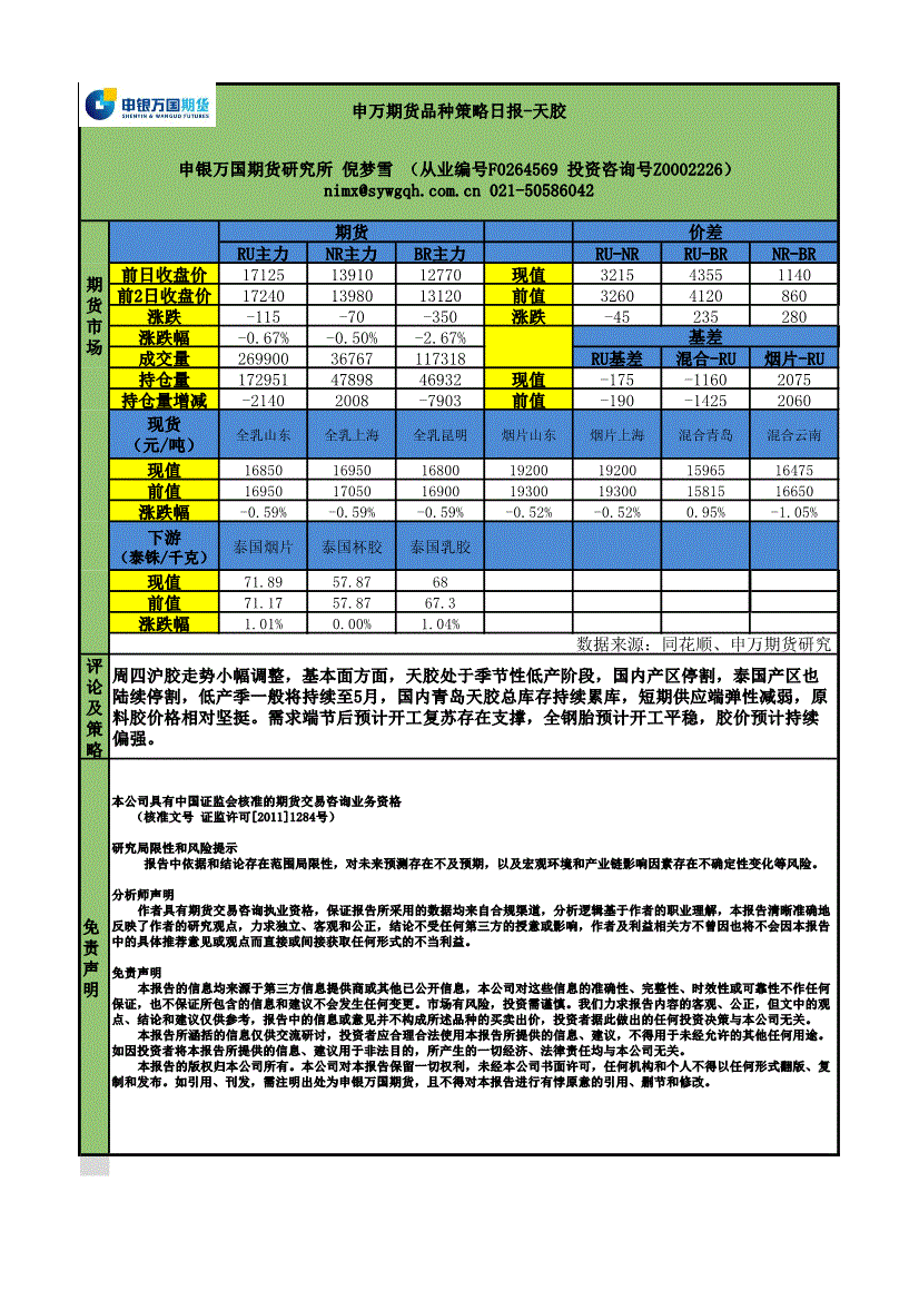 申银万国期货-品种策略日报:天胶-260311
