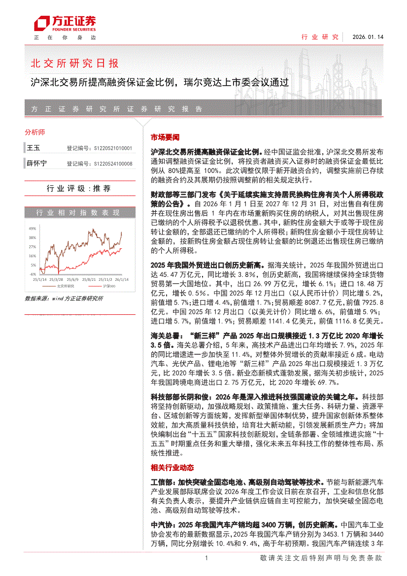 方正证券-北交所研究日报:沪深北交易所提高融资保证金比例,瑞尔竞达上市委会议通过-260114