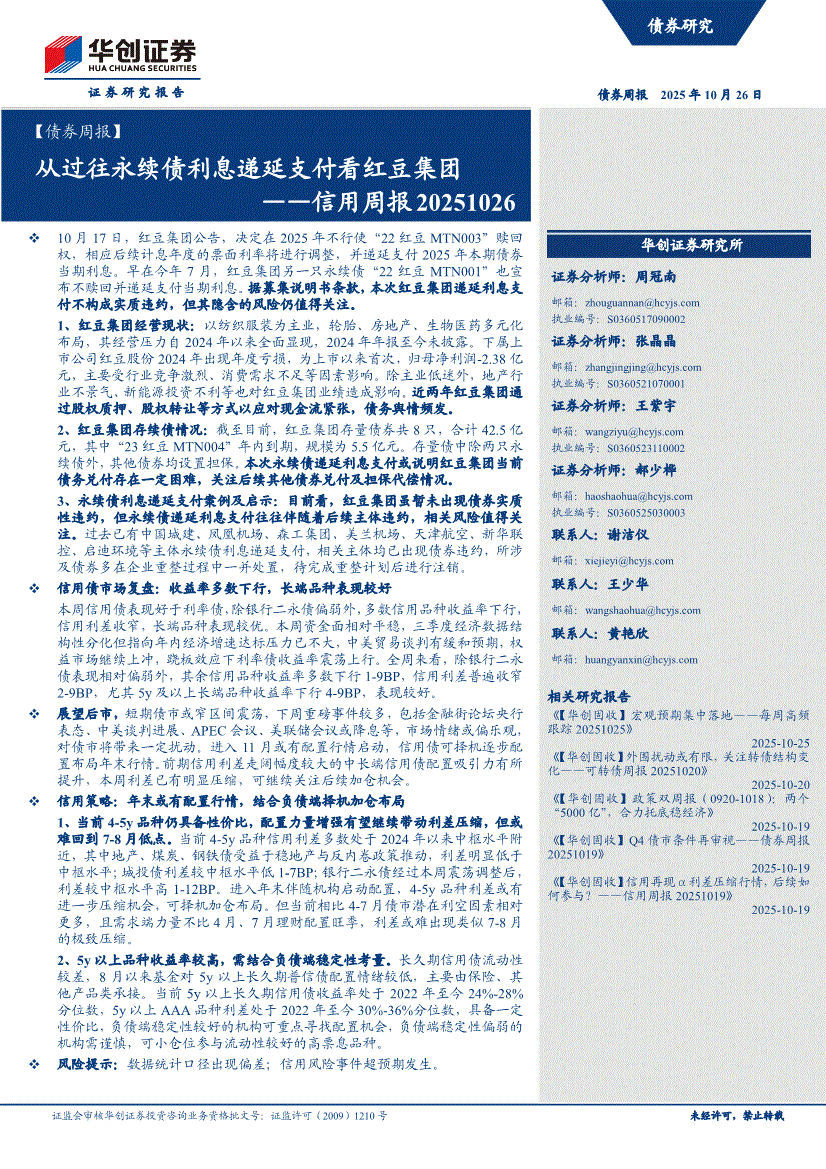 华创证券-信用周报:从过往永续债利息递延支付看红豆集团-251026