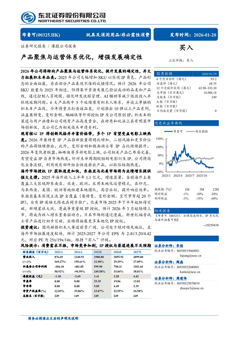 布鲁可:东北证券-布鲁可-0325.HK-产品聚焦与运营体系优化,增强发展确定性-260120
