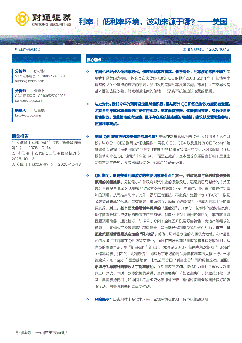 财通证券-利率|低利率环境,波动来源于哪?——美国-251015
