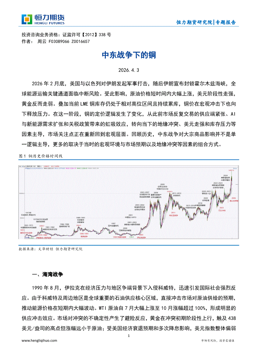恒力期货-中东战争下的铜-260403