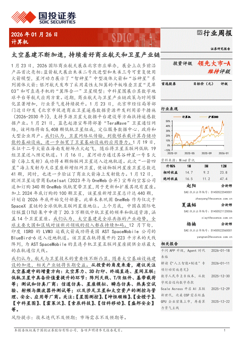 计算机行业:国投证券-计算机行业周报:太空基建不断加速,持续看好商业航天和卫星产业链-260126