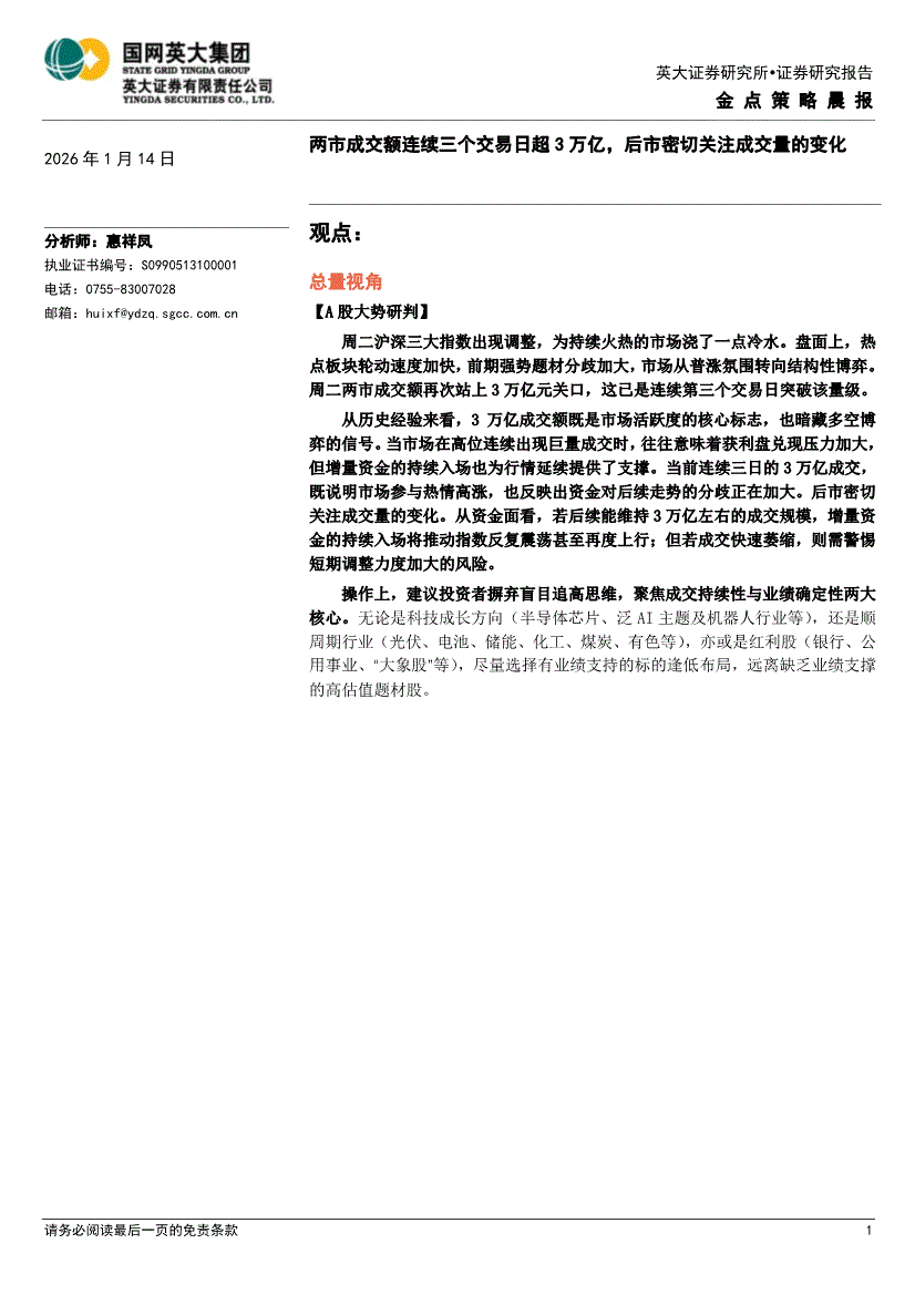 英大证券-金点策略晨报-260114