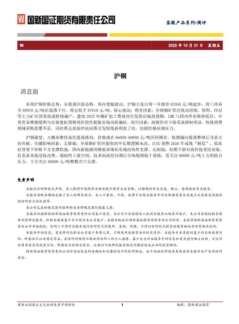 国新国证期货-沪铜周评-251031
