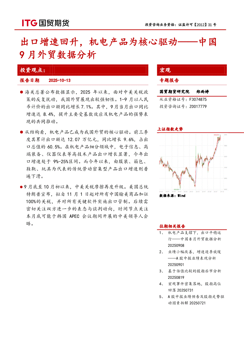 国贸期货-中国9月外贸数据分析:出口增速回升,机电产品为核心驱动-251013
