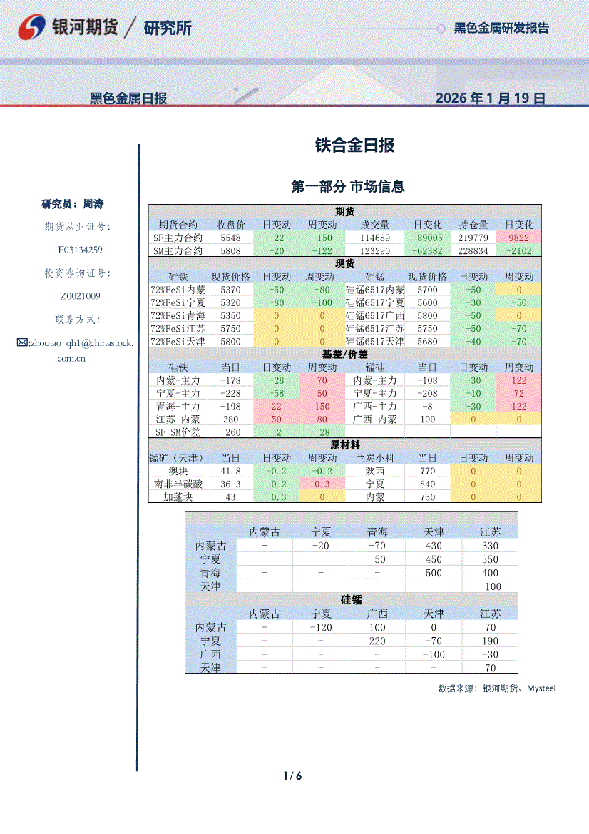 银河期货-铁合金日报-260119