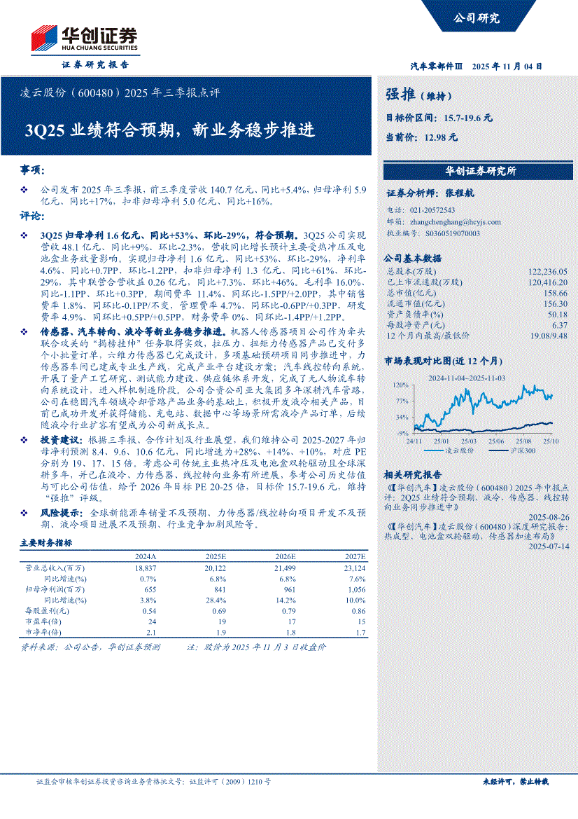 凌云股份:华创证券-凌云股份-600480-2025年三季报点评:3Q25业绩符合预期,新业务稳步推进-251104